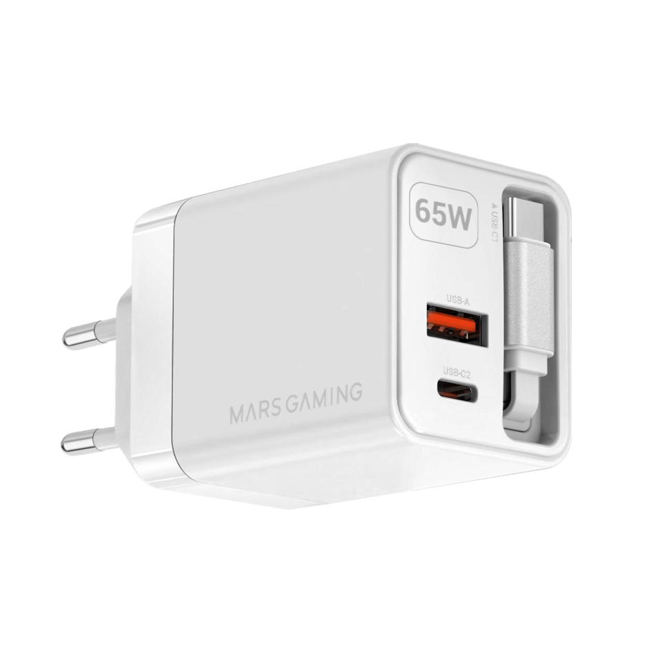 CARGADOR USB PARED USB-C + USB-A GaN 65W BLANCO MARS GAMING