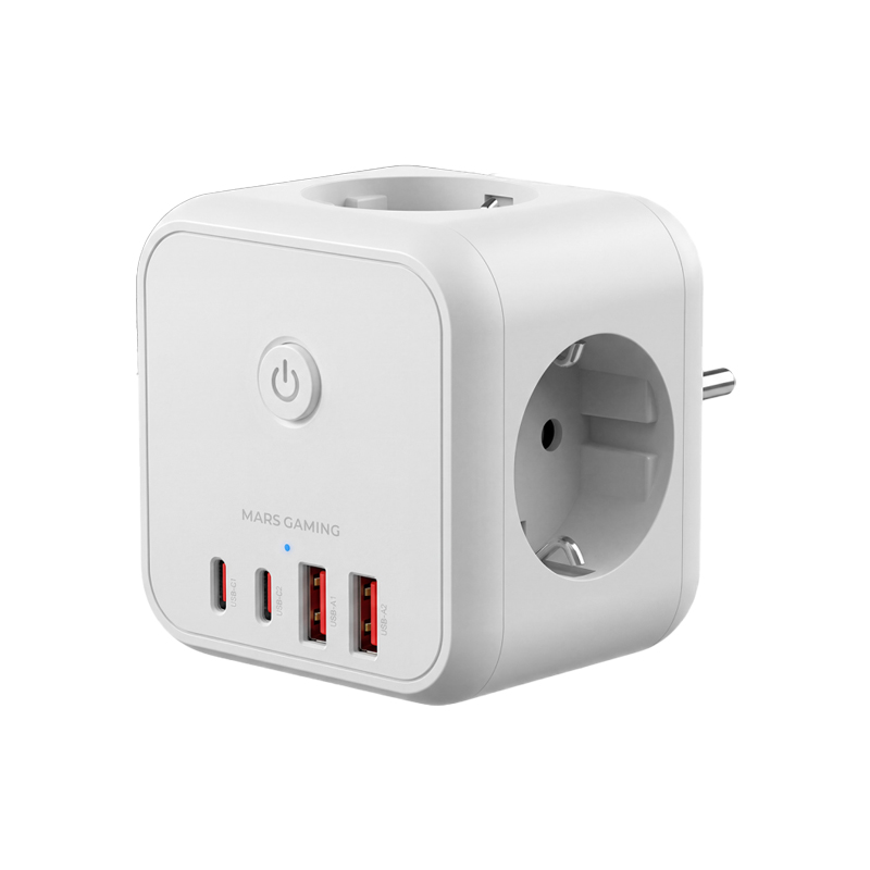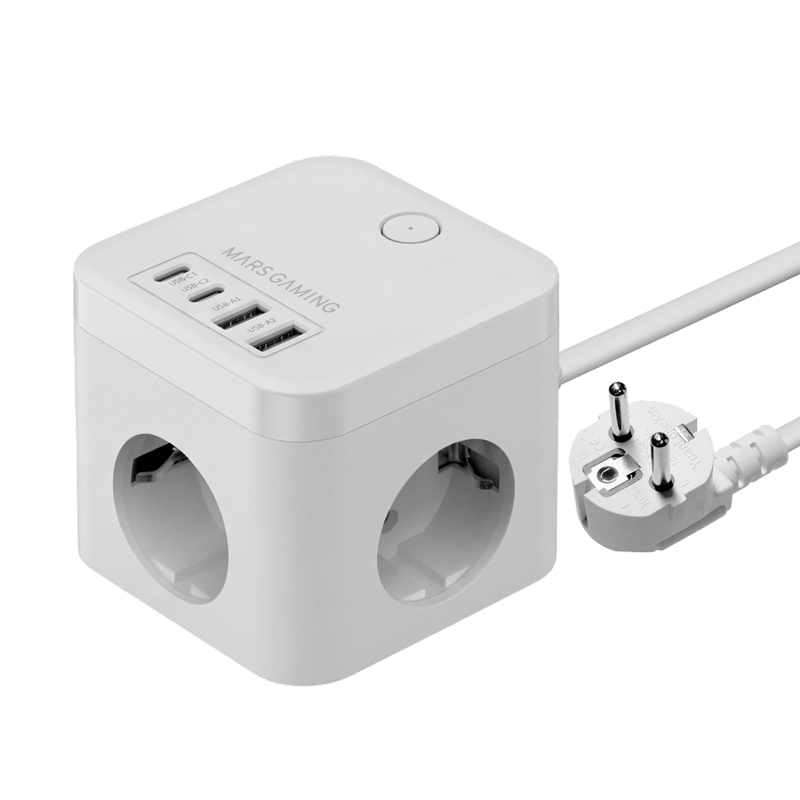 CARGADOR CUBO 3xAC + 2xUSB-C + 2xUSB-A 20W PD+GaN TYPE-F BLANCO MARS GAMING
