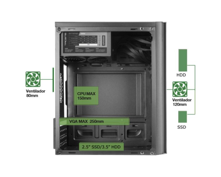 BAHIAS INT:2x3'5 o 2x2'5/ 1xUSB3.0, 1xUSB2.0/ AUDIO IN/OUT/ FTE. ALIM 500W