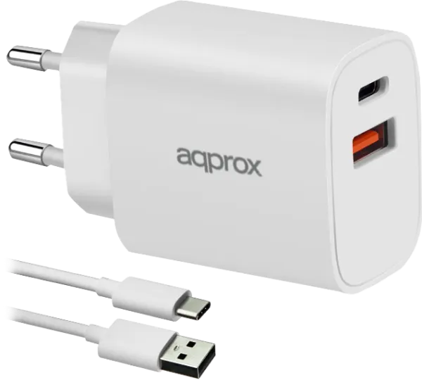 CARGADOR USB DE VIAJE/PARED 1xUSB/USB-C + CABLE USB-A A USB-C 20W BLANCO APPROX