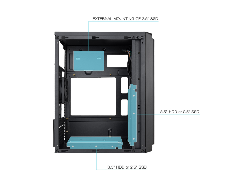 Bahías INT:2x3'5/2'5, 1x2'5/ 1xUSB3.0, 2xUSB2.0 /Audio IN/OUT