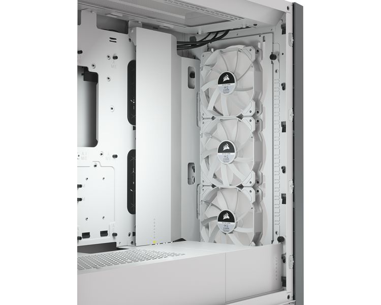 Equipado con tres ventiladores CORSAIR SP RGB ELITE de 120 mm con tecnología AirGuide, con aspas antirremolinos que concentran el flujo de aire y mejoran la refrigeración.