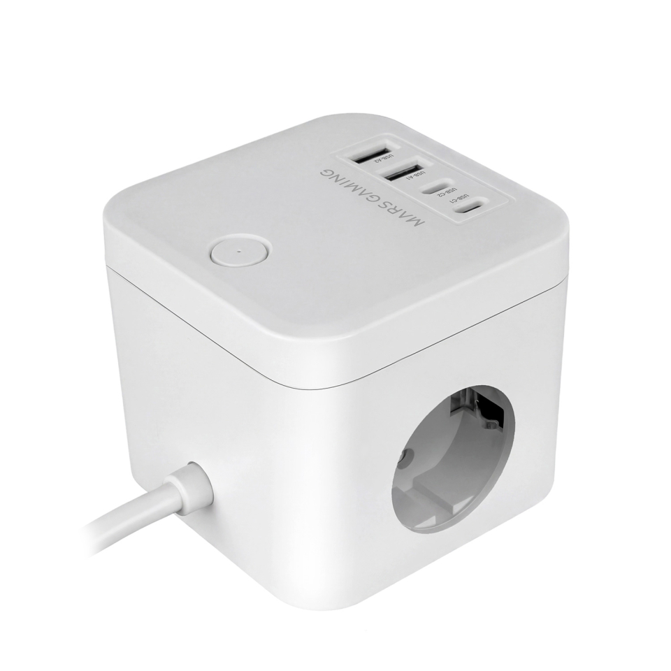CARGADOR CUBO 3xAC + 2xUSB-C + 2xUSB-A 35W PD+GaN TYPE-F BLANCO MARS GAMING