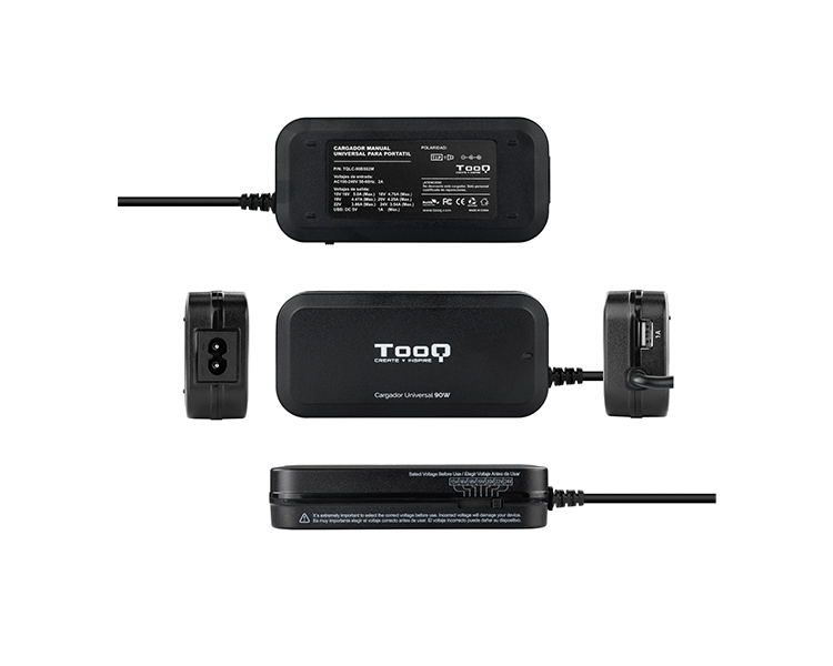 CARGADOR MANUAL 1XUSB 90W NEGRO TOOQ