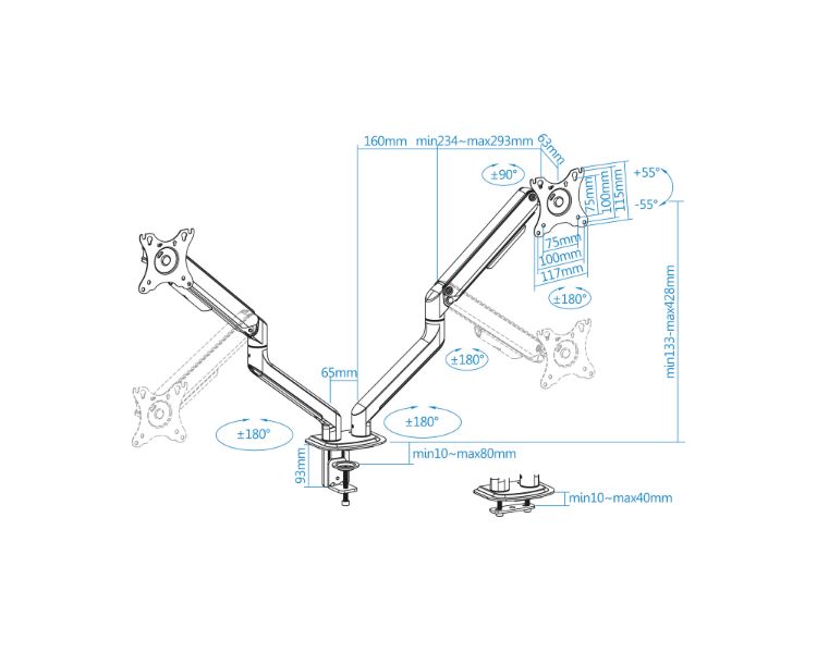 17-32"/ 2 PANTALLAS/ VESA MAX 100x100/ HASTA 9KG POR BRAZO/ INCLINABLE/ ALTURA AJUSTABLE